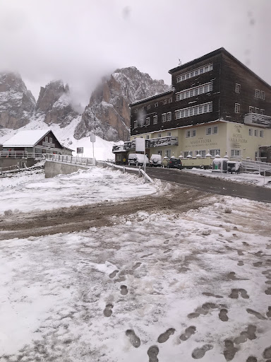 Showing up at 18:00 without reservation at the start of the Italian summer holiday month of August we felt just happy that we got 2 rooms for a night within walking distance from our intended climb the next day. The reception was very friendly although there was a bit of a mix up with the price for the night: Speaking German we were first told that it would be 59€ for a night half-board. It then turned out that Italians do their numbers the same way as in English which made it 95€. We settled for b&b for 59€ and planned for dinner a la carte. Although even that was a bit hectic because dinner started at 19:00 but when we returned from a quick recce of the climb at 20:15 we only got a selection between lasagne and 2 different types of spags with a side salad. But the service was very friendly and the spaghetti nice enough. The rooms were reasonably sized, with a good hot shower and a comfortable if narrow and short bed. There is good free WiFi reception in the room and with parking for free included we felt lucky enough (it can get really busy on the roads and parking gets tricky). It was a good location for our climb but it was also a bit away from anywhere else (the only other building is tourist...
