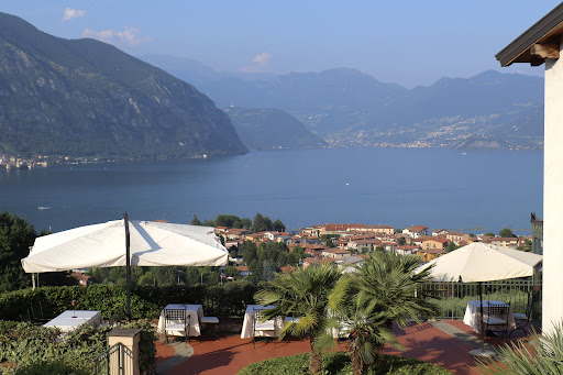 What a beautiful place this is! The room was beautiful and spacious with a French balcony. Swimming pool area was lovely and so was the breakfast room. Breakfast had everything you wanted and eggs were made to your liking. Staff was very friendly,especially the ladies working in the reception. The whole place and the grounds were very well maintained. Beautiful greenery and flowers surrounded the hotel.But,and I’m very sorry there’s a but.The restaurant has gorgeous views of lago di Iseo,but no views can help this restaurant. We off course sat outside on the terrace to enjoy the view,but that was all we enjoyed. The waiters,two of them, either overworked or just bored. They had between them only eight guests the whole night as far as we could see,but we actually never had any service. Yes we had our food and drinks handed to us,but no one pored the wine or water,no one asked how the food was,no one as much as looked in our direction unless we flagged them down.And the food was not good. We tried some local fish which didn’t taste bad,but it was the color grey. Then we had some pork,and the meat was if possible even grayer. Nothing looked very appealing. I am amazed that they don’t make the most of the potential they have. Get a chef that makes simple Italian colorful food and server’s whom actually like what they are doing. This hotel and it’s guests deserve it. They had a very popular seafood restaurant just next door which was packed both nights we were there. I don’t know if that’s the reason they don’t prioritize their own restaurant.Also they could do a lot to improve the atmosphere. Some flowers and candles on the table and some music would at least make it nice to enjoy a drink while watching the scenery . Stay away from the bar though,it was used to stack dirty plates on. Are they forgetting that you have to walk by it to go to the bathroom ?Well,after our complaint the gave us a bottle of wine,and recommended us a lovely local little Osteria the next day. Were the food was simple,but great. We would love to come again,but we would definitely go somewhere...