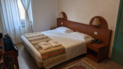 We stayed here for 2 nights, San Pellegrino is charming (2 days for sightseeing will be enough), and this hotel is ideally located, right in the centre, not far from several nice little bars, pastry shops and just a few restaurants. We stayed in a decent room on the 4th floor, very nice (green) view, a balcony included, giving us a view at the old Grand Hotel (which is being renovated, must have been a wonderful place back in 1904 or so). Beds were good (hard is a matter of preference), bathroom had a bath instead of a shower, everything was functional, clean and a bit authentic. Liked it. We did not make use of the spa facilities (10 euro pp), nor did we visit the Terme, situated just behind the hotel (10% discount). Breakfast was sufficient according to Italian standard and staff were helpful and polite (people who remarked that they do not speak English, a bit silly, this is not mandatory and they get what you mean). So, do like we did, from Bergamo, by bus to San Pellegrino, 2 days, then back to Bergamo, to Milano by train, visit Crema for one day and night and end again in Bergamo for another 2 days, also nice old town with lots of...