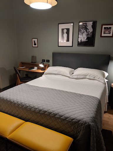 THE GOOD: spacious at 193 s.f.. Modern Scandinavian-themed and comfortable furnishings. The queen sized bed had a firm mattress and luxurious cotton beddings and pillows. There was a sofa bed, a nice arm chair, a good sized desktop and chair for working on your laptop. The lighting was soft and plenty - a modern chandelier, a corner lamp, a desk lamp, and a bedside table lamp. The floor was either hardwood or wood-tile, and there was a rug in the bed area. The breakfast was a great deal better than the usual bread-or-pastry and coffee Italian breakfast. This hotel provided a “set tray” of meats, cornetto, spreads, cheese, Danish pastry, and homemade cake. There were juices, coffee, and water available. If you don’t usually eat a hearty breakfast, you may end up with leftovers. The breakfast was included in the hotel price. There’s a lobby with group seating you can use to meet friends or acquaintances.