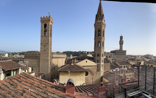 The location of the hotel was quite perfect. We were situated a couple of blocks from the Duomo, Piazza della Rupubblica and the Ponte Vecchio and all directions! Upon arrival to the hotel, there was a designated parking spot out front to allow us to unload our car. The lobby was elegant and welcoming. The desk staff was very helpful with our bags and the entire check in process. Good size lifts and the suites we booked were quite lovely. We had a sitting a room with a pull-out queen size bed, good size bedroom and both rooms beautiful large opening windows. The bathrooms were large and well stocked. Because we had family sleeping on the pull-out couches, Room 539 was preferable as you could enter the bathroom from the hallway vs. Room 535 where we had to walk thru the bedroom to access the bathroom. The typical breakfast buffet was redesigned to accommodate safety due to the pandemic. The dining room was equally as beautiful as the rest of the hotel. Without a double the most amazing part of the hotel was the rooftop Terraza with views of Florence in every direction. We literally felt like we could reach out and touch the Basilica in one direction and the tower of the Palazzo Vecchio in the Piazza della Signoria and off in a little distance the Basilica of Santa Maria. We ended up having a nightcap each evening on the Terraza.