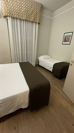 Room was clean and spacious with a closet. There was one queen bed along with one single bed. Its a bit dated in terms on style but it was clean. Bathroom was small but clean and there was toiletries which were replaced everyday. the ac in our room was amazing. It worked so well and would cool the room so quick one of the best ac in all of Europe during my trip.there were some mosquitos in the room they do give something to use in the room to help with it but it wasnt enough i got a few bites.