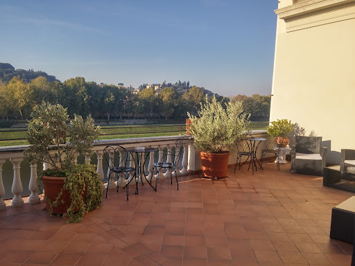 Read moreWe had booked one of the few river terrace rooms for 3 nights and this is what we got. The first thing to note about the hotel is that it’s around 1.5km from the centre of town so we ended up walking a distance every day. One day doing the to/from walk 5 times so that’s 7.km, just bear it in mind. Anyway, had we known, the tram stop Porta Al Prato-Leopolda is just around the corner, so that’s an easy option from the station but not the historic centre. There are always taxis, which are not cheap in Florence, just like most cities.||The river terrace room had a beautiful view enhanced by the fact that with the USA Consulate being along the road, it’s blocked off, with not as much traffic as there would be otherwise. Strange that the tarmac is pristine, so that made it even quieter. This did cause a few problems with over-zealous police telling us “You can’t walk there” (ie, the pavement). Adjacent to our terrace was the rooftop bar, which fortunately was only open 1 night, otherwise it may have been noisy.||The room itself was pretty basic with a cramped shower but there was an espresso machine and free mineral water. The main feature of the hotel is the building itself, which is basically a small palace with a grand staircase. The breakfast room, in particular, stands out with glorious roof frescos and a view of the river. The staff were also very friendly and approachable.||PS: The Gamberini cake shop/bistro around the corner is...