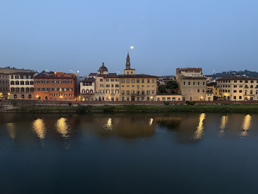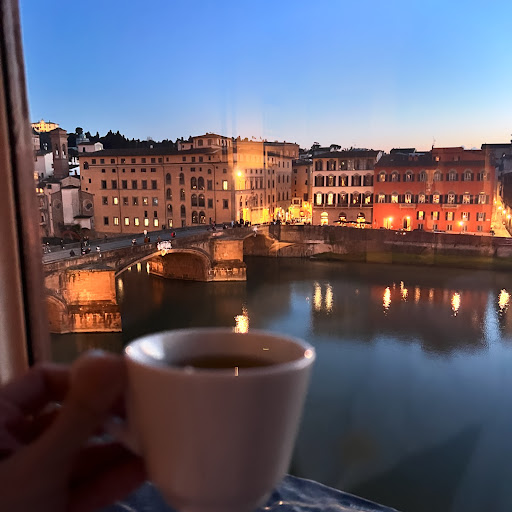On arrival at the hotel, slight issue with finding a temporary parking space as the allocated parking was taken up by a white van. The hotel staff came and sorted out the hire car and took us into reception. Quick check in by friendly staff and then taken up to our room in the main block, no.421. The bellboy took us to our room , through a warren of passages newly decorated. On entering our room, we thought that we were in a 5 star hotel. Lovely furnishings and what turned out to be a very comfortable king size bed. The bathroom, with a jacuzzi was very well appointed. My wife, an interior designer , was very impressed with the room. The usual items were all there for use: kettle, mini bar fridge, safe but also slippers, an iron and ironing board and an umbrella- which came in useful with the odd shower here and there during our stay. We had booked a central location but did not realise how close it was to all of the sights. The Ponte Vecchio bridge was just a bridge away, less than a 3 minute walk. The breakfast was within the hotel. Good choice of food catering for all types. The staff were lovely bringing us fresh coffee or frying us eggs on request. Plentiful buffet with the only downside being that the scrambled eggs, bacon and bean stew were tepid at best - would have been nice to have it hotter. Otherwise, breakfast was great in getting our energy levels up for visiting beautiful Florence on our doorstep. All sights within 10-20 minutes walk. |We also booked another room, no 207, in the older part of the hotel, for our children, 18 and 20 years old. They thought they had been taken to the wrong room as it was massive- 18 foot high ceiling with a massive canopied bed, jacuzzi and large seating area with two sofas. The only negative thing about the hotel was that to get to the old building or the restaurant for breakfast, was that you had to go through a lovely open air courtyard , which if it was raining then you definitely needed the umbrellas. |Parking was off site, which as in any congested city, trying to find a space outside the hotel itself was a but hit and miss. The valet parking was very efficient, which just needed a call from reception to get your car back within half an hour from calling. We did go to the outlet centre North of Florence for a bit of retail therapy by car. A delightful stay for all of us , with lots of beautiful architecture, good food and drink and lovely people at the hotel . The location, room comfort and attention of all of the staff made our short break wanting all of us to return again as soon...