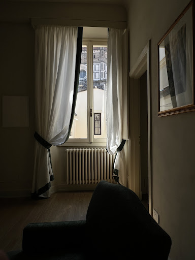 Royal Suite is on the 2nd floor, same as reception and breakfast. It's massive with original 18th century frescoes (above the bed & on the living room walls/ceiling) - can see the Duomo in all rooms although obviously from a lower angle. Honestly it feels like being in a museum display... probably what it feels like to sleep in a palace. The bed's really comfortable as well. The highlight for me is definitely the beautiful marble bathroom, all colors mirroring the Duomo - absolutely like a dream to be in a clawfoot tub right next to such magnificence. Rooms have radiators and double windows with curtains that shouldn't be opened except for the one in the bathroom. For a couple waking up at different times, you can't hear your partner in the other room at all.