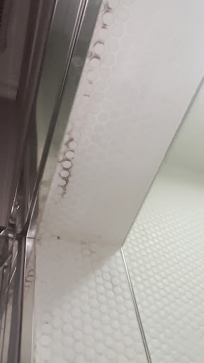 Our “upgraded room with a sauna” was covered in black mold.