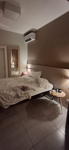 Read moreAbbiamo pernottato per una notte in una stanza tripla dell'hotel. La camera è piccola e stretta, solo 3 letti singoli, 1 armadio con coperte in più e 2 comodini piccolissimi. Non dispone di frigo. Non dispone di tavolino. Non dispone di sedia. Ho dovuto tenere le valige per terra. Non riuscivamo neanche a spostarci 3 persone contemporaneamente perché molto molto stretta. Per non parlare del bagno, strettissimo e scomodissimo, un po' vecchiotto, specialmente la doccia, poco luminoso, c'era solo una lucina sullo specchio. Cosa grave che MANCAVA L'ASCIUGACAPELLI ( di conseguenza non ci siamo potuti lavare neanche i capelli dopo una giornata di caldo ), MANCAVANO LE SAPONETTE E I DOCCIA SCHIUMA (che hanno sostituito con 1 dispenser di sapone sul lavandino e 1 nella doccia tra l'altro ROTTO E VUOTO ). La fortuna è stata che a pochi metri dall'hotel ci sono piccoli alimentari, quindi abbiamo rimediato comprando un bagnoschiuma per poterci lavare. Ok per la pulizia della stanza. Non dispone di ascensore. Per l'entrata in hotel c'è una stradina stretta che non consente il transito a 2 auto contemporaneamente....