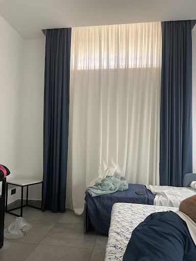 Read moreQuattro stelle non significa solo moderno. Voglio partire spiegando l'enorme punto positivo della struttura: la cordialità del personale. Passiamo al resto. La reception si trova in una specie di seminterrato di un palazzo, all'interno di un residence di diverse palazzine. In questo seminterrato sono presenti delle camere e la sala per la colazione. In quest'ultima se dovessero presentarsi tutti i clienti insieme non ci entrerebbero, a meno che non ci si trasformi in ninja. Ma la colazione è molto buona e il personale è d'oro. Noi avevamo avuto un upgrade di stanza, la deluxe room: una stanza distaccata dal complesso sopracitato, con un piccolissimo spazio verde sintetico in cui sono presenti due sdraio e un tavolino. Bene, aprimo la porta (unico spazio che spalanca all'esterno, insomma niente finestre da aprire ma una grande fissa per far entrare il sole); per due persone bisogna mettersi d'accordo per muoversi all'interno, il bagno non ha finestra e anche qui bisogna essere persino magri per muoversi; basti pensare che il lavandino si trova dietro la porta e bisogna chiuderla per far uso dello stesso lavandino. Linea internet assente, segnalato più volte ma mai che abbia funzionato. Dulcis in fundo: la spiaggia vicino l'albergo ha un divieto di balneazione per acque inquinate, in realtà buona parte della costa di Giardini Naxos. Ovviamente non dipende dall'albergo ma sarebbe stato un grande punto a favore in quanto si trova a pochi metri. Ma vi elenco le altre cose positive: letto comodo, frigobar utile, aria condizionata, convenzione con un lido che potrebbe non avere il divieto, servizi come massaggi ed...