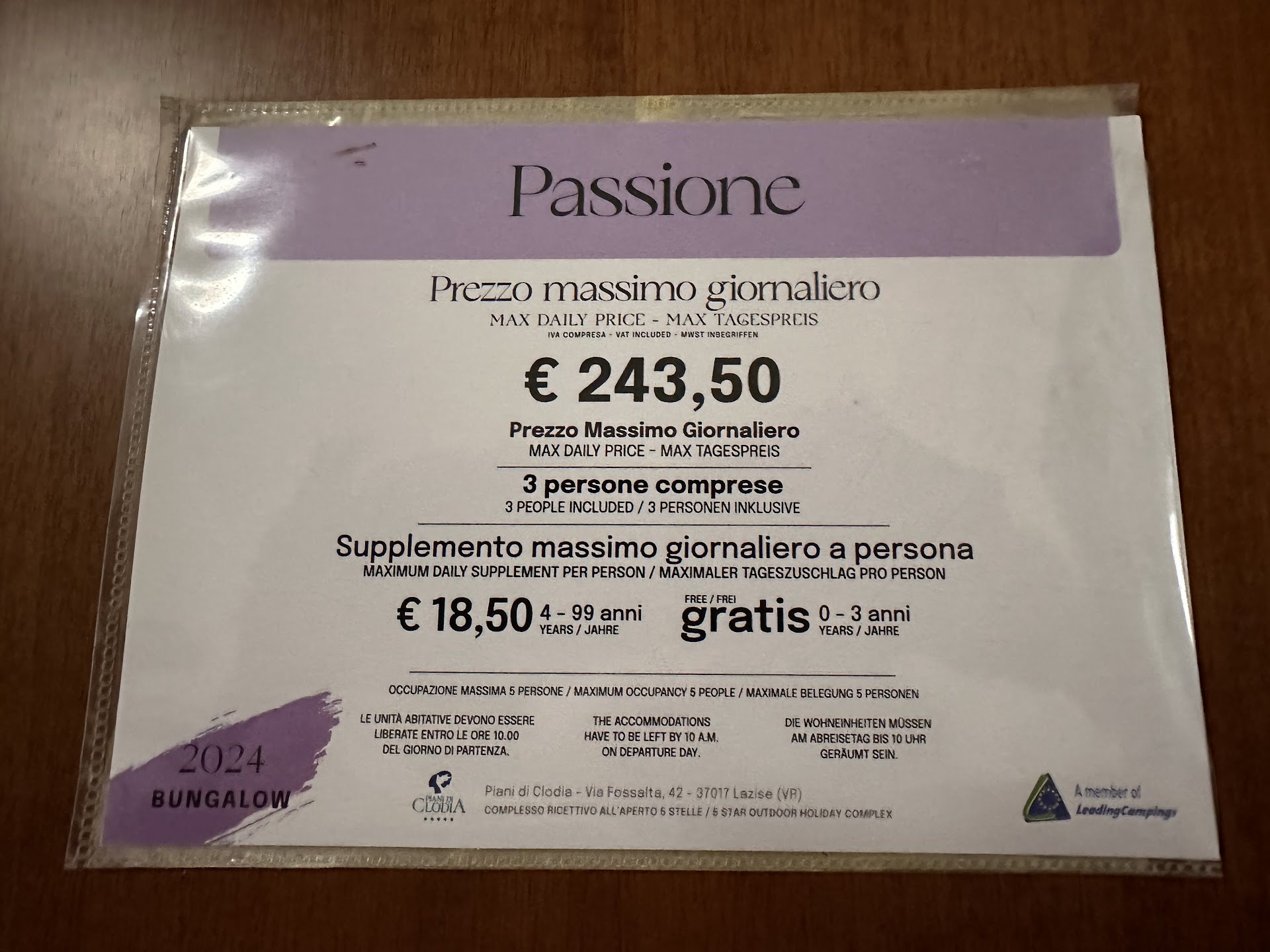Read morePianni di Clodia ||Stayed from 7th August to the 19th of August on a pitch plus with our tent. ||Accommodation ||Pitch size was fine with electricity and water. ||What was not so fine is the way the pitches are packed in and are crowded and not to mention noisy at night with no noise regulation from staff for example quite time after 11pm (ear plugs came in handy) ||Shower blocks and toilets ||Shower blocks are all clean and regularly attended to by cleaning staff. ||The toilet facilities are next door to the showers, once again the toilets are cleaned on a regular basis, but staff clearly do not know the meaning of cleaning quietly especially early in the morning with toilet lids simply being dropped or slammed down after cleaning, wouldn't be so bad if the toilet lids are soft closing which they are not. ||Choose your pitch carefully as you will not be wanting to stay near any of these facilities. ||Swimming Pools ||Plenty of choices for swimming pools but they are all overcrowded. ||The waterpark closest to the reception area is less crowded but if you fancy a relaxing swim, you will be disappointed due to the number of balls and Frisbees flying through the air. It's not relaxing in the slightest. ||Bars ||Nothing but terrible service will be found here. ||To buy a drink, you will queue and once you get to the cashier you will order your drinks and then be given a receipt which you will then move a metre sideways round the bar to hand the ticket over to someone else who will then slowly get your overpriced drinks. This is even worse at the wooden hut bar near the main stage. ||Once again you will queue in the heat and humidity only to pay one person only for them to give you a receipt and then form another queue less than half a metre round the corner to have your overpriced drinks dispensed by another member of the bar staff at such a leisurely pace you might have fully dehydrated by the time you actually get them. ||For goodness' sake...Surely it would be quicker the same person who took the payment to dispense the drinks rather than the crazy ticket method. ||To avoid the awful service and overpriced drinks, just go to the supermarket and buy your beverages of choice, put it all in a cool box and take that with you to watch the evening entertainment. ||When you leave the evening entertainment area you may notice a handful of security staff. This is the only place you will see them. No idea what else they are meant to be doing, perhaps they just stay there all night.... who knows! ||Restaurants ||If you are going to eat on site, I can highly recommend the Marc’Aurelio restaurant this is a little oasis of calm and fantastic service (Probably because it is independent) and not to mention fantastic food. Go here, you will not be disappointed. ||Take out Pizza is also great near the main bar. ||Conclusions ||Pianni di Clodia is great if you just want to base yourself there and want to spend most of your time away from the complex visiting other places like Lazise or Verona. ||If you are looking for a relaxing family holiday unfortunately, I cannot recommend this holiday park. ||If you are looking at their social media and thinking this looks amazing that will be down to the staged shots from their onsite media team who take some great shots, but sadly this is not reality. ||Fancy a walk down by the lake in the evening? Better stock up on mosquito repellent or perhaps a bit of stargazing? No chance due to the amount of light pollution. ||Verona is about half an hour drive away and is a beautiful city with plenty to see and do. Lazise is just 10 minutes away and a boat trip around the lake...