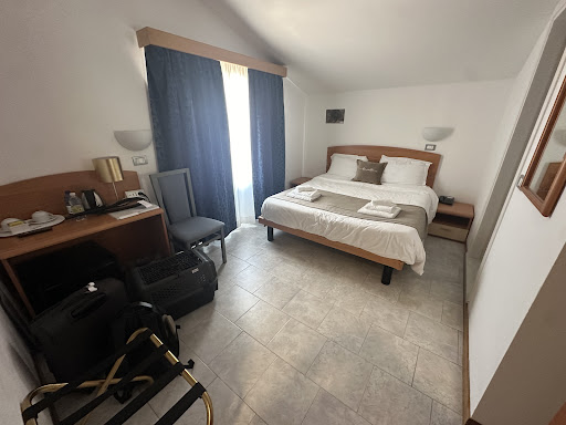 Kurzaufenthalt für vier Nächte Anfang Juli 2020: Das Hotel wurde uns von Freunden empfohlen, welche dort bereits drei Mal gewohnt hatten und auch diesmal dabei waren und länger als wir blieben. Sie hatten uns nicht zu viel versprochen: Die Betreiber, Monica und Luca, sind äußerst freundlich, angenehm herzlich und zuvorkommend. Von den 24 Zimmern waren aufgrund der Coronakrise nur max. 5 Zimmer belegt. Die angeordneten Einschränkungen hinsichtlich Mund-Nasen-Maske, Mindestabstand etc. wurden gekonnt gemeistert. Die Küche des Hotels ist besonders hervorzuheben: wir hatten Halbpension gebucht und die zum Abendessen angebotenen Speisen (man sucht beim Frühstück schon aus einer Auswahl aus) waren sowohl geschmacklich, als auch optisch und von der Menge her ohne jede Beanstandung, sehr lecker und ansprechend. Die Zimmer sind Standardgröße und sehr sauber. Wir hätten uns zwar einen Balkon gewünscht, um sich spätabends noch ein wenig raussetzen zu können, aber dass es da keine Balkons gibt, wussten wir ja vorher - darf hier jetzt also nicht als Kritik verstanden werden. Der Außenbereich ist trotz der "innerstädtischen Lage" sehr nett gestaltet und lädt zum Verweilen bei einem guten Glas Wein ein. Frühstück und Abendessen konnten allerdings ausschließlich im Gastraum eingenommen werden, der über nur kleine Oberlichtfenster verfügt. Gemütlich war es da trotzdem... ;-) Fazit: Tolle, sehr nette und aufmersame, jederzeit hilfsbereite Betreiber, Deutsch sprechen sie gut! Sehr gute Küche Weg zum Strand in (noch) angenehmer Entfernung Schirme / Liegen im Preis inbegriffen Angenehme, ruhige Zimmer Ortsübliche Getränkepreise +/- Essen auch im Außenbereich zu servieren wäre angenehm Vielen Dank an Monica und Luca!!! Bis zum...