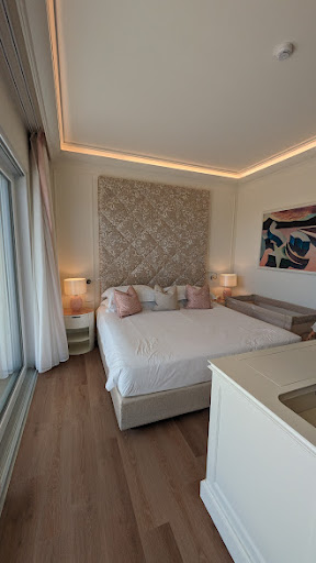 Das Badezimmer ist ein wahres Highlight: Alles aus Marmor gefertigt und mit einem Schminktisch ausgestattet, der einer Prinzessin würdig ist 👑. Unsere Tochter ist begeistert! Der Sternenhimmel über dem Whirlpool lässt einen fantastisch entspannen. Hier wurde wirklich nirgends gespart – alles ist von hoher Qualität. Das Zimmer kann mit elektrischen Rollläden komplett verdunkelt werden, sie sind super isoliert, man hört nie die Nachbarn, es ist total ruhig und auch das Bett ist ein Traum! Die riesige Terrasse, die wir ganz für uns allein haben, bietet direkten Zugang zum Strand und ist einfach ein Traum und mit mega bequemen Möbeln ausgestattet 🌴🏖️.