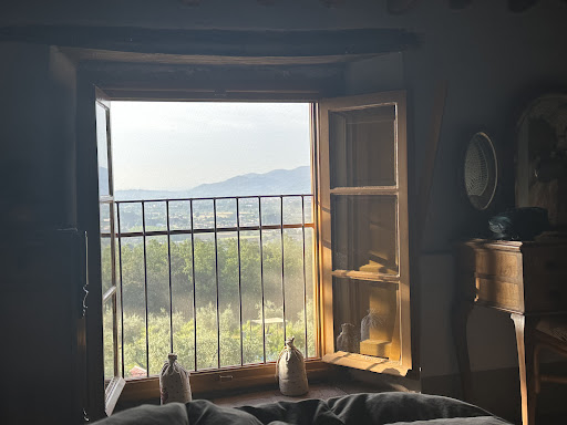 The property is in the mountains and the vineyards and olive trees are on the property and are so beautiful! What a view! The entire property is peaceful, quiet and the rooms have shutters on the windows that allow you to sleep as late as you'd like!