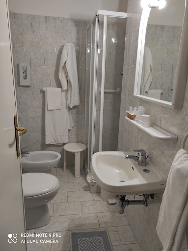 On arrival, we were given a room on the second floor. The bedroom was spacious enough with a large double wardrobe with plenty of hangars. It opened out to a narrow balcony which stretched around two sides of the room. It faced west so it caught the sun in the evening. It also overlooked a newly opened kebab shop (more later). There were a couple of small bedside cupboards either side of the bed.||||The bathroom was a fair size, with a decent shower, and towels were changed every day. There was a desk, modern tv, and a small fridge, which was useful. There was an air-conditioning unit but we never used it. Wi-fi was poor to non-existent and we could generally only get a signal on the ground floor close to reception. ||||The 'double' bed was two singles pushed together. These tended to come apart during the night, and by morning a 3-4" gap had developed. The mattress wasn't particularly comfortable, I could feel the mattress springs through the bedding ||||The room was all quite clean, and we saw the cleaning ladies mopping the floor each day.||||We were allocated a fixed table in the breakfast room each day. We found the breakfast to be rather poor, no fresh fruit apart from a bowl of apples, just tinned fruit salad (why hotels still serve this when fruit is plentiful and inexpensive in italy I don't know). There were yoghurts, fruit drink (not 100% juice) and water. There was sliced cheese and ham, hard-boiled eggs, and some ricotta, slices of bread roughly sliced (no rolls). Croisants, jams, and small pieces of shop-bought cake. Coffee was hot and fine. ||||Breakfast was the same day after day with no variation. Part way through our stay the hotel filled up with guests as part of a tour, and they were down by 8am, leaving before 9am. We generally arrived afterwards and there was often little left, though really there wasn't a great deal to start with.||||The breakfast staff had a habit of standing at the far end of the room purveying their guests. I know they have to be attentive but it was as though they were watching your every move, which I found rather off-putting.. There was one particulay lady called Laura who was very helpful and informative.||||Part way through our stay a house opposite our bedroom opened up as a kebab shop. We watched them clean and setup the place one day, and the next it was open. Not many customers at first, but many more on their second day. The shop was open until midnight, and their young children were playing out in the street until it closed. So all of a sudden, the peace and quite of sitting on the balcony and watching the sunset with a glass of wine was gone. Also, as we like to have the window shutters open when asleep, you could smell the cooking drifting though into the bedoom.||||Alongside reception there was a small comfortable sitting area, and there was the offer for a tea of coffee in the evening from the bar.||||So all in all a rather mixed review, though I doubt that I would choose to stay...