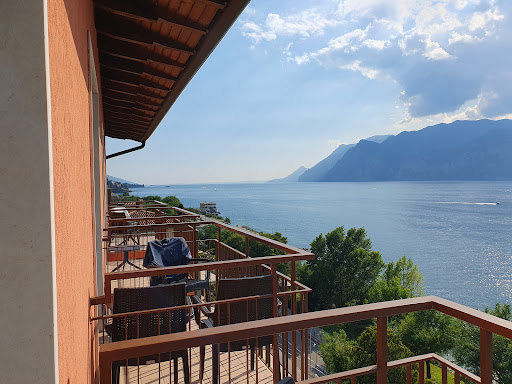 Read moreNous avons passé 3 nuits dans cet hôtel cet été. L'hôtel dispose d'un petit parking avec barrière, nous n'avons jamais eu de problème pour trouver une place. Il faut juste une voiture pas trop grosse et bien savoir manœuvrer pour pouvoir se garer, les places étant relativement exiguës. Nous avons été bien accueillis, et la chambre qui nous a été allouée (chambre familiale) était très grande, avec une chambre séparée, une cuisine, un balcon donnant sur l'avant avec une superbe vue sur le lac de Garde et une terrasse à l'arrière. En outre elle était propre et calme malgré qu'elle fut placée à proximité des escaliers et de l'ascenseur. Mes enfants ont disposé d'un grand lit chacun, ils étaient donc contents. Le petit déjeuner est correct, dommage qu'on ne serve pas de "vrai" café même si celui de la machine n'est pas mauvais. Les croissants n'étaient par contre pas très bons car trop secs. Le dernier jour alors que nous devions partir tôt avant même l'ouverture du petit-déjeuner, on nous a préparé un sac avec sandwiches et boissons, c'était vraiment une belle attention. L'hôtel dispose de sa propre plage privative avec jeux pour enfants et table de ping-pong, mais il est dommage de mettre 2 transats sur l'unique ponton, le condamnant ainsi aux seuls utilisateurs desdits transats et l'interdisant donc (ou quasiment) aux autres personnes de la plage. Il y a également une piscine et un jacuzzi sur les hauteurs à l'arrière de l'hôtel, avec transats et fontaine à eau fraîche à disposition. Une partie moins profonde dans la piscine qui est à 1,40 m minimum, aurait été préférable pour les enfants ou ceux qui ne savent pas nager. Par contre, c'est un peu raté pour le dépaysement italien considérant que nous étions les seuls à ne pas parler allemand dans tout l'hôtel. Ce n'est pas dérangeant en soi, mais quand on s'adresse à vous directement en allemand alors que nous sommes en Italie et que nous parlons parfaitement Italien, ça ne laisse pas beaucoup d'ouverture aux autres nationalités. Nous y avons cependant passé un très bon séjour et je recommande...
