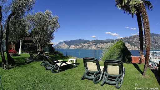 Read moreDavide und Andrea betreiben das Hotel Villa Carmen mit Leidenschaft und sprechen relativ gut deutsch. Sie gehen zusammen mit ihren Mitarbeitern auf die Wünsche der Gäste ein und geben am Rande noch den einen oder anderen Tipp für Aktivitäten, wenn man sie fragt. Das Hotel hat eine grandiose Lage! Super für einen tollen Blick auf den See vom Balkon oder von der Gast-Terrasse oder vom hoteleigenen Swimming- oder sogar Whirlpool. Ausreichend Parkplätze sind vorhanden, Liegen am Strand oder am Pool ebenso, so dass niemand Liegen reservieren muss! Neben dem Hotel gibt es eine Wassersportfirma, die Kurse und Sportgeräte verleiht. Im Hotel gibt es die Möglichkeit, diese Geräte (SUP oder Surfbrett) kostenlos am Strand wegzuschließen. Ich habe mir daher für 9 Tage ein SUP bei wwwind Square ausgeliehen. Es gibt ausreichend gute Lokale in der Nähe vom Hotel, so dass es genug Abwechslung für den Speisplan gibt. Alternativ gibt es im Hotel von 13-23h die Möglichkeit, Snacks wie Pasta, Pizza, Sandwich, Salate etc. zu sich zu nehmen. Die Preise dafür finde ich für einige Produkte allerdings um ein bis zwei Euro zu hoch für die Portionsgröße. Dafür muss man aber nicht mehr los marschieren, wenn man nach einem langen Sonnentag erschöpft ist ;-) Die Preise für Getränke sind in Ordnung. Oben am Pool steht ein großer Wasserbehälter, an dem man sich kostenlos bedienen darf, wenn man Durst hat. Ansonsten gibt es auch die Möglichkeit, sich Getränke in Plastikbechern mit zum Pool oder Strand zu nehmen. Die Zimmer und der Balkon sind meiner Meinung nach von der Größe ausreichend. ich würde definitiv ein Zimmer mit SEEsicht nehmen, keine Bergsicht. Der Ausblick, auch aus dem Bett, ist es wert! ich möchte hier gar nicht so viel positives schreiben, weil ich dann Angst habe, dass ich in Zukunft Schwierigkeiten der Zimmerbuchung bekomme ;-) Ich komme gerne wieder, liebe Davide und Andrea! Ihr seid sehr gute Gastgeber! Ergänzung am letzten Urlaubstag: 10 gute Gründe, warum ich wiederkommen würde: Lage, Lage, Lage tägliche, gründliche Zimmer und Badreinigung alle 3-4 Tage Bettwäsche Wechsel sehr nette, aufmerksame Hoteliers, Bedienungen, sowie Reinigungskräfte absolute Ruhe unter Olivenbäumen und Palmen auf der Pool Ebene mit grandiosem Blick auf den Gardasee eigener Strandabschnitt, der nie überfüllt war (Juli 2017) Möglichkeit, kostenlos Sportgeräte direkt am Strand diebstahlsicher zu lagern Parkplätze für ALLE Hotelgäste deutschsprachige Mitarbeiter, von denen man interessante Tipps erhält. Sie übernehmen auch die Buchung oder Reservierung 😉 nettes Abendambiente auf der Hotelterrasse oder auf dem eigenen Balkon, wenn er zur Seeseite...