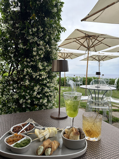 The views out over the sea as well as the views back at the mountains are honestly just amazing and the beauty in all directions is really incredible. The staff is super kind and super attentive. The cocktails are 18 EUR but they are probably the best cocktails we’ve ever had, and they serve you lots of snacks with each cocktail, so it really makes it worth it.