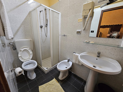Read moreSconsigliatissimo in merito alla pulizia! Il peggior hotel in cui sia mai stato! Siamo arrivati prima del previsto nell'indecisione se farci aspettare o meno, ci hanno dato la prima camera che si ritrovavano. Appena abbiamo visto quella camera siamo rimasti scioccati: polvere ovunque, asciugamani gialli, stanza freddissima, porta del bagno sfondata e senza possibilità di chiuderla, materassi di cui sono rimasti ormai solo le molle, acqua calda non funzionante e nessuna presa libera per caricare i cell. Ci siamo decisi ad andare a chiedere spiegazioni prima di sistemarci visto che saremmo rimasti diversi giorni e in quelle condizioni per chi è allergico alla polvere non si può proprio stare. Ci hanno detto che avrebbero controllato ma niente, continuavamo a trovare problemi e alla fine ci hanno proposto di andarcene se volevamo oppure ci avrebbero dato un'altra stanza. Per non rimanere per strada, siamo rimasti nell'altra camera dove la polvere comunque non mancava, ma almeno era più grande, e leggermente più sistemata. Un hotel strapieno di specchi! Le camere sono alte e quindi è davvero difficile riscaldarle anche con il condizionatore al massimo. La televisione neanche si accendeva, ma questi sono dettagli. Questa stanza non aveva neppure un box doccia quindi già stretta che era la doccia, con la tenda, lavarsi è davvero molto scomodo. Arredamento in stile antico, quindi l'armadio nuovo non ci stava nell'arredamento, ma almeno era l'unica cosa nuova che c'era in quella stanza! Il personale che fumava nella struttura e la puzza del fumo - insopportabile - che arrivava fino a dentro le camere. Serrature scomodissime, grandi per inserirci quelle chiavi con un portachiavi molto pesante. Colazione italiana classica con la scelta di una bibita e un cornetto a testa. Insomma molto povera come colazione. Possibilità di portare la colazione in camera con il vassoio. Mi hanno messo in difficoltà al pagamento perché volevano solo contanti. Indeciso se dare 1 stella o essere buono e darne 2, ma ho evitato di fare foto ad un hotel del genere! Un cuscino era strappato nell'altro invece c'era qualcosa di plastica pericoloso all'interno. L'acqua che passava da scottente a fredda in continuazione, senza mai essere stabile ad una temperatura...