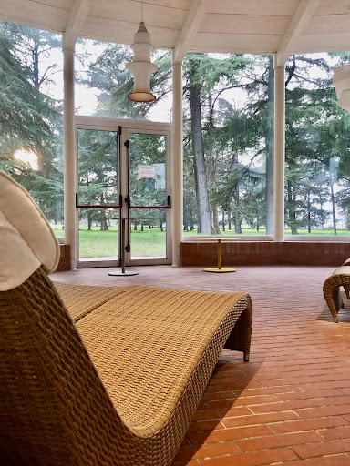Read moreStruttura ampia in un bellissimo parco a ridosso delle colline parmensi, ingresso hotel molto accogliente ed ampio parcheggio. Piscine molto grandi con acqua termale. Trascorso una giornata con pacchetto "Un giorno con noi" per € 60 a persona in quanto festivo. L'ingresso alle piscine termali non è stato del tutto semplice (mancanza indicazioni chiare percorso piscine-SPA); Spogliatoi di dimensioni non sufficienti agli utenti presenti, mancanza spazi di appoggio e assenza di personale dedicato alla pulizia durante il giorno (spogliatoi sporchi), forte rumore proveniente da un termosifone negli spogliatoi degli uomini; Per quanto riguarda lo spogliatoio sopra la Piscina del Parco, un sorriso e un po’ più di gentilezza da parte del personale addetto non dispiacerebbe. Ambienti freddi causati da lunghi corridoi non riscaldati ma necessari per transitare da un ambiente all'altro; Zona relax situata in area di transito non idonea a svolgere la sua funzione e con lettini occupati con teli di utenti non presenti (mancanza di personale dedicato a sorvegliare a questo problema diffuso anche in altre zone), inoltre un punto con distribuzione acqua sarebbe gradito. Pranzo: ottima l'idea della consumazione del pasto direttamente in accappatoio ma l'ambiente non è idoneo in quanto situato adiacente all'ingresso dell'hotel e in area di filtro con la sala ristorante. Abbiamo avuto freddo per tutta la durata del pranzo e alcune pietanze (flan di parmigiano, secondo di anatra e mela cotta) erano fredde, non abbiamo segnalato il problema perchè non vedevamo l'ora di andare al caldo. Prima volta che torniamo dalla terme infreddoliti. Struttura con grandi potenzialità ma difficile consigliarla e tornarci a causa...
