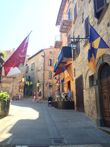 Discovering Casa Delle Grazie was an absolute delight. Set in a beautiful position with an amazing view of the medieval village, Montone, you are surrounded by beauty. Pretty gardens, filled with colourful flowers, fruit trees, and plenty of herbs that you can help yourself to. A generous vegetable garden delivering tasty zucchini, cucumber, onions and an abundance of tomatoes, plucked straight from the vine and delicious. Grapes are growing on vines around the gardens and olives developing on the trees too. Happy chickens, providing daily fresh eggs, great for carbonara! A most welcome pool and restful sun loungers to sit back and enjoy the peace and tranquility under azure skies, watching swallows and swifts soaring high. Each property has a front terrace, perfect to enjoy pastries from the bakery and the best place to sit and watch the graceful, colourful sunset. The night skies are spectacular too as it is so dark, just the place for watching meteor showers, satellites and spotting constellations and planets. Montone hosts great festivals and there are several including the film festival (July) and Santa Spina (August). A huge community effort producing delicious home made food for people to buy, sit together on long trestle tables, it is wonderful. The village has several restaurants, a truly Italian community atmosphere with a bakery and cafe both offering great coffee, cakes, bread, ice creams and aperitivo to watch the sun set.