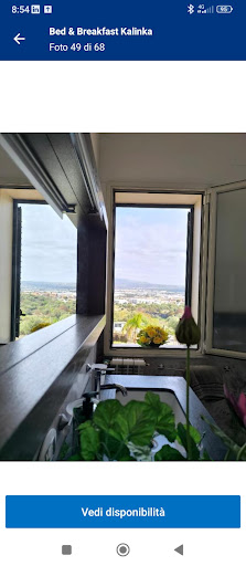 Отдыхали в Bed & Breakfast Kalinka в середине сентября 2015 г. Этот ВВ находится на окраине городка Motta Sant'Anastasia, в отдельной резиденции (типа ТСЖ или кондоминимума, два ряда таунхаусов с отдельным въездом на территорию). Расстояние до аэропорта Катании около 10 км, до центра Катании - примерно так же. Ближайшие магазины, пекарни, кондитерские в Мотте, Вокруг (до 3-10 км) несколько очень больших торговых центров, в разных направлениях и парк развлечений Этнолэнд. В этот ВВ удобно приезжать на машине, есть место для парковки - территория закрытая , место очень спокойное. Месторасположение очень удобное для путешествий по Сицилии, т.к. в разные направления ехать до достопримечательностей от 10 до 150 км. Хозяйка ВВ - Татьяна, гостеприимная русская женщина, живет в этом же доме в отдельной цокольной части, В этом ВВ сдаются три комнаты на втором этаже, в одной из комнат красивый вид на Этну, в двух других - на резиденцию, там же находится одна ванная комната (ванна, унитаз, биде, большой стол-раковина), состояние комнат и мебели очень хорошее; интернет работает нормально; первый этаж - общая гостиная и кухня, есть обеденная зона на свежем воздухе под навесом. Тут удобно останавливаться большой семье или компании друзей, которые вместе путешествуют. Завтрак, как обычно в таких местах, скромный - чай, кофе, сладкая выпечка, лучше покупать свои продукты по желанию. Минусы - добираться только на машине, общественный автобус есть в Мотте, но до него идти далековато и не удобно, т.к. в таких местах нет тротуаров; Соотношение цены и качества нормальное. Спокойный отдых и сон. Хорошее, бюджетное место для мобильных...