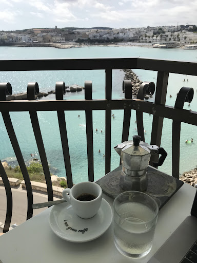 Read moreOur hostess Veronique was extremely helpful and ever-present, arranging taxis, phoning restaurants and giving us an aperitif and nibbles on her balcony. Veronique tried very hard to communicate with us despite both our French and Italian being very basic. This is a quirkily, artistically furnished 4th floor apartment with a lift and just 3 or 4 rooms, all with a glimpse of the sea. You can also dry clothes and sunbathe on the roof. Breakfast is taken up the road at the very nice Cafe Moresco overlooking the sea, you give them a note from Veronique and the staff are lovely. She provided beach towels when we asked and hair driers etc were provided in the rooms. I would have appreciated a kettle and coffee in the rooms and would have sacrificed some of the fairy lights and other decorative touches for this practical facility. Similarly a bedside reading lamp rather than cute dim lights would be better for solo travellers. The jacuzzi was a bit impractical with the parquet floor. There are some lovely ornaments but i did worry about breaking them! The wifi is good and free. The best thing is proximity to a lovely swimming beach (a few pebbles so beach shoes help) which we headed for before breakfast everyday - a one minute walk! We thought Mon Amour was a bit expensive but Otranto is quite a pricy resort all round. It is handy five minute stroll by the sea to bars, restaurants and the castle,...