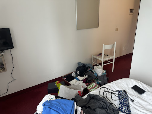 We are pretty low maintenance travelers. We have traveled to many European countries and understand the differences in accommodations. We look for clean rooms, with an en-suite bath, close to transportation, and requiring AC in case it is hot. On paper, this hotel checked off these boxes and offered breakfast (which we like when it is available). This hotel room failed in many of the basics. First, we had to go to the sister hotel to check in. (It was reasonably close. But it is annoying to have to take your luggage past your accommodation to check in and then carry it back.) We were given “bath” towels that literally had holes in them and were only a little larger than a hand towel. (Note, I complained about this the next morning and was given real bath towels that were nice.) The bathroom was very narrow. I’m a small woman and I had to walk side ways in the room. I could use the toilet normally. Though I needed to be careful not to hit anything. But if you are tall, you would probably have to sit in the seat diagonally. The bedroom was clean and good sized but lacked places to put things, as did the bathroom. There was literally no place to put our bathroom kits. It was noisy. I could hear people in the next room talking. I’ve never been to a hotel that didn’t have breakfast when they said they would. Breakfast starts at 7:30am. We had to walk to the other hotel for breakfast. When we got there about 7:40, it was dark and the door was locked. We came back after 8am and it was open. When I talked to them about the towels, I also mentioned breakfast. I was told 7:30am was correct. The next two days, the same thing happened only we were standing outside in the rain with a half dozen other guests. Eventually The lady setting up breakfast unlocked the door. However, she didn’t have breakfast out yet. We were able to get coffee and yogurt. When we left (8:00ish) the food wasn’t all out yet. A few other notes that didn’t affect us much but I know are important to a lot of people. They said they have an elevator, but it was limited to luggage when we were there. The air conditioner didn’t work. I’m not sure if they turned it off or it was broken. We were able to use the windows to cool off the room before we went to sleep. We needed to close them because of noise and rain at night. Overall, this hotel is not worth the rates...