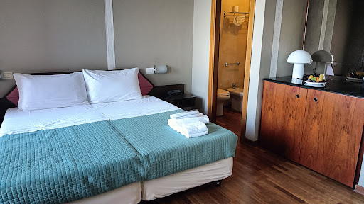 Read moreLe stelle le hanno perse per strada negli anni... non fatevi ingannare dalle 4 stelle... al massimo 2! Prenotazione di una camera matrimoniale delux. Arrivati in albergo ci danno un’altra camera “ volevamo omaggiarvi con una camera più grande”. La camera non è naturalmente quella della foto e non è delux, ma carina e vista mare per cui decidono di non lamentarci. Inizia poi la sfilza di cose che non vanno per un 4 stelle: pavimento sporchissimo. Chiesto gentilmente per le prossime pulizie di avere un occhio di riguardo al pavimento, risposta “ abbiamo segnalato alla direzione, il pavimento non è sporco è graffiato” cosa?!? Abbiamo inviato la receptionist a venire in camera e controllare con mano!! Il giorno dopo il pavimento è stato pulito. Colazione base base: macchinetta per bevande, succhi diluiti con acqua, torte e biscotti del supermercato, aperta la confezione e tagliate a fette. Uova sode. Poca frutta. Pane per toast da tostare. I primi 2 giorni di mangiabile c’erano dei cornettini vuoti (molto pochi rispetto al numero di camere occupate, infatti non bastavano per tutti) poi spariti, “arriveranno” ci dicono, ma che risposte sono? Arriveranno prima o poi….Nessun riferimento in sala se avevi bisogno perché magari finivano i succhi o il pane da toast dovevi andare in reception. frigo in camera staccato e pur attaccando la presa non funzionava. Segnalato ci viene detto che serve un adattatore (io guardo la receptionist e lei guarda me e penso “mi vorrà dire che devo andare a comprarlo?!?) mi dice che segnalerà al collega del turno successivo. La sera chiedo nuovamente e mi danno l’adattatore. Tiriamo fuori il frigo e proviamo con l’adattatore, nulla di fatto. La mattina seguente segnalato l’insuccesso, mi propongono altri 5 adattatori da scegliere. Non credevo ai miei occhi. A quel punto ho chiesto se avessero potuto mandare in camera qualcuno per l’assistenza perché noi non siamo dei tecnici. La ragazza della reception viene in camera e ci fa spostare il frigo. Preso in braccio da mio marito e spostato da una parte all’altra della camera. Bene era la presa non funzionante, spostandolo ha funzionato. Non funzionava nè quella presa nè quella di uno dei due comodini. Stanza senza balcone: Va bene non ha il balcone, ma in quanto hotel 4 stelle sul mare vorrete darmi almeno uno stendino per appendere i teli del mare e i costumi?!? Richiesto mi viene detto che li hanno esauriti. Cosa?!?? Costumi appesi tra doccia, maniglie, teli mare che non sapevo dove appendere. Dopo due giorni mi fanno trovare uno stendino. Unica nota positiva la posizione dell’albergo vicino al mare e al centro.