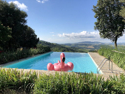 Read moreThis summer we spent a week in Tuscany (in July) and stayed at Podere Palazzone for the first time. ||||We immediately fell in love with the beautiful place (there is a magnificent look from the pool to Volterra and the surrounding hills). ||||The room are very clean and the house (400 about years old) is very nicely decorated and restored. ||||Maura cooks delicious meals - always starting with their own olive oil and fresh bread, followed by pasta (different varieties and homemade pesto) and the main course. My family loved the desserts while I preferred espresso. One evening we had an olive oil tasting and one night Maura and Enrico offered us a Beefsteak Florentine. It was simple fantastic: very good quality and perfectly done. The meals were accompanied with Enrico's and Maura's red wine and a bottle of fresh water. As it was very dry and hot this year (no rain since May) the bottle was refilled several times. Our hosts were very attentive.||||Despite the weather we did some hiking and our daughter took riding lessons and went twice on a ride. The girl who gave the riding lessons was a good instructor and she took care of horse, rider, weather conditions and the area. ||||The four dogs, two cats, chickens and other animals are very lovely, well looked after and cared for. The horses live in a separate area and are in great shape.||||We really enjoyed our stay and we will surely come again to...