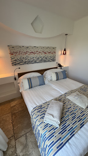 Lots to say about this wonderful hotel that pleasantly surprised us. It is a stunning small resort right on the beach that is very well run and very well kept. It was our second hotel on this trip and the minute we walked through the grounds, we looked at each other and said we're not going anywhere and spending all of our time at the hotel. I mean it was just everything we dreamed for our Sardinian holiday. Firstly we must discuss the hotel grounds. The gardens are stunning. It's obvious they were created by a talented landscaper and they are also beautifully maintained. So many gorgeous spots to enjoy with a wide variety of vegetation that blend together to create the most beautiful outdoor spaces to enjoy all your days in. The grounds are so well maintained, and attendants were constantly tidying up after guests through rotations of lounge chair use, etc. throughout the day. There are TWO gorgeous pools. I don't quite understand why there are two pools, but there are, and they are both amazing and have their own feel. And both exceptionally well maintained and clean! I really appreciated that. We simply could not decide which one was best and enjoyed time at both. The vibe of the hotel is very chill. No loud music, just wonderfully relaxed and serene. At the end of the second pool you come to the hotel's restaurant, Don Carlo. We ate four delicious and varied meals there. I cannot tell you how wonderful the food was, all so good and a good variety for many meals. And the setting is absolutely stunning right on the beach, perfectly shaded at lunch and gorgeous ombre hues over the water for dinner! It does not get any better. Stepping off the back of the restaurant you land right on the gorgeous beach with a private strip of loungers and umbrellas just for the hotel guests. The beach is lovely and the water, well it's Sardinia, so it's basically perfect. Never did we have to race to get a lounge chair on the beach or either pool and this was July. Such a relaxed, well maintained, high quality and easy atmosphere. Breakfast by the first pool each morning was delightful. The assortment was very good and fresh. Especially loved the fresh orange juice, eggs and fruit. All so good. The hotel manager was visible and eager to please. She greeted us personally and inquired about any of our concerns. The lobby and other indoor/outdoor sitting spaces are just so lovely, and so plentiful. Absolutely spoilt for choice. The only downside to this hotel might be some aspects of the rooms, but you will not be spending much time in your room here! Our suite (the one on the the website listed as "Queen Suite with Pool View") is directly over the bar area and over lobby toilets. We could hear clanking, soft voices and doors shutting below us very easily. I will absolutely stay at this hotel again, but I will not stay in this room again. It might work for you if you're a heavy sleeper. The doors (behind the bar and the lobby toilets) are very loud through the floor up to this room and I was at the mercy of anyone who might be using these spaces as to how early I could fall asleep or how early I'd be woken up! The other suites would not suffer from this issue based on their position in the building. Most of the regular rooms appear to overlook parking areas only, so the views from the rooms are not why you stay here. But the rooms themselves are very nice. This hotel was everything we hoped for our Sardinian...