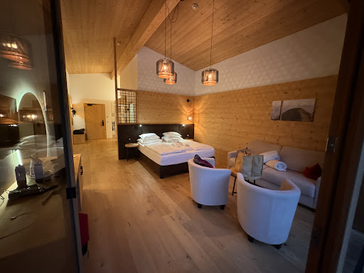 Die Poollandschaft haben wir kaum genutzt, da hier leider sehr viele Kinder waren. Hier wurde sich sehr rücksichtslos verhalten. Kinderpool war leer und der Hauptpool wurde zum Kinderparadies. Beckenspringen, fremde Menschen nass spritzen usw. Sehe hier nicht das Problem bei den Kindern oder dem Hotel, sondern bei den Eltern, die ihre Kinder wirklich einfach alles machen lassen. Hauptsache sie müssen sich nicht um ihre Kinder kümmern 😅🤷♀️ Das ganze hätte uns deutlich mehr gestresst, wenn wir den Privatwhirlpool nicht gehabt hätten. So waren wir nur 2x in der Poollandschaft und ansonsten nur im Zimmer. Positiv sind die tollen Saunalandschaften. Toll angelegt und absolut traumhaft. Hier ist für jeden etwas dabei. Und man kann sich die Ruhebereiche zurückziehen, denn hier ist Adults Only bereich.