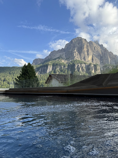 The hotel is fabulous, from the rooms, to the general hotel decor, to the bar area, to the views, to the service, to the pool and separate wellness area, to the outdoor hot tub with views over the Sella mountain range. The hotel is fresh, clean, modern and elegant. No expense has been spared, from a speaker in the bathroom, connected to the television, to the bathrobe and slippers in your room, available for your use. I loved my stay! It was my third time staying in this area and this hotel has, so far, come at the top of my list. The reception staff were super friendly and were always available to answer queries which is really helpful.