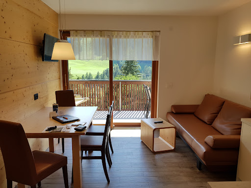 Read moreAbbiamo trascorso una settimana in questo bellissimo residence, in un appartamento (superior) con davvero tantissimo comfort e molto spazio. Posizione centralissima, vicina alle fermate dei bus che portano praticamente ovunque. La cucina è super fornita, con tutto ciò che può servire per cucinare, oltre ad essere grande e avere tanto spazio per appoggiare le cose. Utilissima la lavastoviglie, per la quale sono fornite le pasticche (così come il detersivo per lavare i piatti). Anche la zona relax/pranzo è molto ampia, con un grande balcone con delle belle sdraio, che però affaccia sulla strada che è un pochino rumorosa. Il bagno con finestra è grande e confortevole, con una doccia da sogno, enorme e perfetta! Camera da letto spaziosa, con letti comodi e delizioso balconcino riservato con vista al Piz de Plaies. Bella la sala giochi al 3 piano (mio figlio ha adorato l'hockey da tavolo) e la zona esterna con i giochi, molto originali. Ottimo il servizio pane, con cornetti deliziosi. Possibilità di utilizzare gratuitamente fiammanti biciclette con tutto l'occorrente (caschi, seggiolini ecc.). Lavatrice (a pagamento) capiente e utilissima. Alla reception tantissimi dépliant di informazione turistica, ristoranti, itinerari, previsioni del tempo e soprattutto la gentilezza dei titolari, che sono sempre disponibili per qualsiasi informazione. Grazie ancora di tutto, deposito delle valigie compreso, siamo...