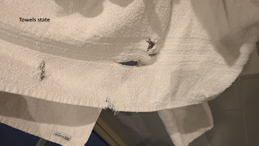 -Cleanliness -the room and hallways were dirty. Upon arrival, the floor was unclean, and trash was left in bins and drawers. Under the bed were dust bunnies, and the cleaning service was poor throughout our stay. Linens were never changed—one set for a 10-day stay is below a 1-star standard.
