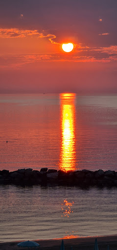 Io e la mia ragazza abbiamo fatto 4 notti in questo hotel.. Allora diciamo che se cercate un hotel che basta uscire dalla porta e sei in spiaggia ad un prezzo contenuto, è il posto giusto... Noi avevamo la mezza pensione, e compreso nel prezzo avevamo posto in spiaggia, cioè ombrellone e 2 lettini, e l uso delle biciclette, sono solo 5 quindi se hai fortuna la trovi... Locale dall aspetto esteriore bello e anche la reception curata, ma camere bagni e parcheggio auto lasciano a desiderare. Se alloggiate al primo piano al mattino alle 7 avrete l estasiane sveglia della porta della cucina che si apre e si chiude cigolando in una maniera assurda... I letti non sono proprio comodi... Per la colazione e la cena è tutto a self service come in mensa, in una camera ci sono tutte le pietanze e prendi il vassoio e scegli quello che vuoi. Dopo di che vai nel altra stanza difronte e vi sedette a caso dove volete. A colazione, è come la classica degli hotel 3 stelle, dal dolce al salato, la cena si hanno a disposizione 3 primi 3 secondi 4 contorni dolce e bevande... Le pietanze erano discrete... La colazione parte dalle 7.30 fino alle 10, la cena dalle 7.30 alle 9...Le porte delle camere sono ancora con la chiave e non con la tessera... Il parcheggio, è successo che l hotel era pieno, e dovevo uscire con l auto e c erano più auto che intralciavano l uscita e non riuscivo ad uscire, fortunatamente i proprietari delle auto erano ancora in hotel e le hanno spostate, ma la questione non è che erano parcheggiate male, e che non c'era posto a sufficienza per tutti e li hanno fatti mettere in maniere assurde, fin che tutto va bene ok, ma se succede un urgenza e devi prendere l auto e non riesci ad uscire?? Tirando una somma direi: dato che è il primo anno di questa nuova gestione hanno ancora TANTO da fare, sistemare molte cose, il mio voto è un 6, solo perché il personale è molto disponibile e perché hai la spiaggia a 2 passi dal hotel. Certo non si va al mare per stare in stanza però ci sono altri hotel 3 stelle che sono molto meglio, però il prezzo è contenuto quindi se a voi non interessa che la vostra camera sia perfetta i vostri letti non siano confortevoli, non vi interessa se ci sono rumori molesti alle prime ore del mattino, non volete spendere tanto ma vi interessa solamente andare al mare questo posto va...