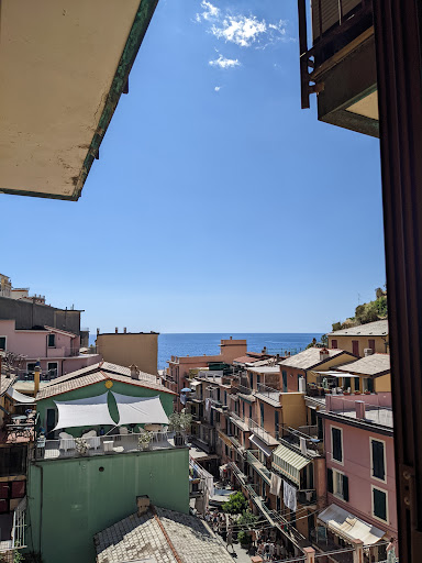 Location: Some poor reviews mention the amount of walking and number of stairs to reach the location. Visiting Cinque Terre, one would hope there is already an expectation of lots of walking up and down many hills and stairs. Definitely not a place for those with mobility issues or trunks of luggage. We took the train from La Spezia. From the Manarola station it was a five minute walk with some light up hill walking. Of all five towns we felt lucky we decided to stay in Manarola. The town has the super busy waterfront and the more chill uphill part of town. It was perfect. 5 Terre Pelagos is located right at the cusp of each area. The views from our room (cave room) were breathtaking. The shared balcony has incredible views too.