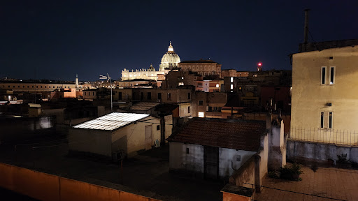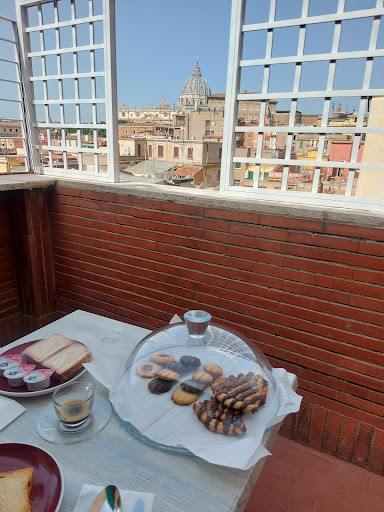 Situato a poche centinaia di metri dal Vaticano, gode di una vista spettacolare. La struttura ( un appartamento situato all'interno del condominio ) è composta una sala comune adibita a sala colazione e 2 camere. in una camera la doccia si trova all'interno della camera da letto, ad un paio di metri dal letto mentre il bagno con lavabo è stato ricavato in un piccolo vano all'interno della stessa camera. L'altra camera invece presenta al suo interno il bagno completo anche di piatto doccia il tutto in ambiente separato dalla camera da letto. Entrambe le docce sono sprovviste di una porta quindi se non si fa attenzione è facile la fuoriuscita di acqua dalla doccia. Le TV presenti in entrambe le camere sono pressoché inutilizzabili poichè in una stanza riceveva pochissimi canali mentre nell'altra il telecomando non funzionava e nonostante avvisato il gestore della struttura nulla è stato fatto. Al nostro arrivo abbiamo trovato nel frigorifero ( peraltro spento o non funzionante) della sala comune una confezione di latte già aperta lasciata probabilmente da chi aveva soggiornato prima di noi, quindi ciò denota una poca attenzione da chi si occupa di riassettare le stanze tra un ospite ed un altro. Avendo fatto tutto online non abbiamo mai avuto il piacere di incontrare il proprietario...