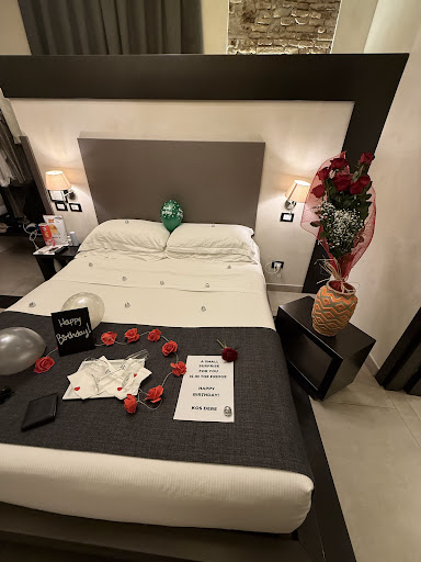 Read moreThe neighborhood around Campo De' Fiori is my favorite in all of Rome. This property is not a "traditional" hotel, in that the rooms are on a floor inside a building which houses other residential apartments. It is a couple of floors up and there is an elevator available. The owners have done a fabulous job refurbishing the space. It retains the charm of the building--such as GORGEOUS ceilings from the 1600s--but has been modernized to be completely comfortable. Air conditioning is heaven sent. The bathroom is roomy and the shower is modern and fabulous. Our bed was kingsize and comfortable. There was a loveseat-sized chair in the room. We had a corner room with lovely views overlooking Via dei Giubbonari, which is the (mainly) pedestrian street leading to Campo De' Fiori. With the soundproof windows closed, no noise reached the room. It was a FABULOUS location. in addition to Campo De'Fiori, Piazza Navona is in easy walking distance. A generous, tasty breakfast of pastries, yogurt, scrambled eggs, pancakes, meats, cheeses and fresh squeezed orange juice was included each morning. It can be enjoyed at a table in the reception area or brought to your room. This property is a wonderful value for its quality and location. I loved it and would stay again...