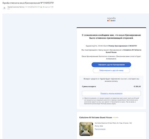 We had to book another hotel last-minute. Immediately, we disputed the charge through Agoda: we submitted a complaint via the app and selected the "call them" option. We strongly recommend doing this—otherwise, we might not have gotten our money back. The process took over 3 hours of calls and waiting on hold. Initially, support claimed we’d violated a policy, but we remained polite and persistent, stressing that the rule was never disclosed. Eventually, we received a full refund.