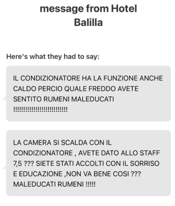 Read moreI have been going on vacations for a long time but never have I experienced a level of disrespect and unprofessionalism before. Hotel Balilla is all that, and worst. ||Our whole experience started with the hotel owner Carlo, literally bickering at the front of the hotel with my friend’s sister who was just there to visit her brother. He came at her in a threatening manner accusing her of illegitimately staying in the hotel when we haven’t even spent the night yet. He refused to listen to her explanations and continued arguing in front of the guest. ||||Our reservation came with breakfast but only got to use it a couple of times due to scheduling limitations. The breakfast starts at 0730, which is too late in my opinion, especially if you’re a guest who’s wanting to travel early to other places in Italy. You’d have no access to drinking water if you need it as it’s just not offered. We managed to avail of the breakfast a few times we decided to have a late start but were treated differently for unknown reasons. We were denied seats saying the tables were “occupato” when there’s literally no one in the small breakfast area. My friend had to go upstairs in her room to have her breakfast the one time she went, while I had to insist on the seat I wanted. As a paying guest, I feel this is just flat out discrimination. I asked some of the guests if maybe I needed to make a reservation, but said they didn’t have to, which is how it should be! That part would just remain a mystery to me I guess, as the owner just spoke Italian to us the whole time, even though I managed to hear him speak a little English to another guest at one time. Oh and you’re not allowed to eat whatever he has prepared on the table. There were packaged pancakes, toast, etc, but all was offered was coffee and a croissant. ||||The bed was really uncomfortable and each guest only had one pillow (paper thin!) to use. ||||Overall, I do not recommend this place. The location is sketchy and seems unsafe as indicated by the need to constantly lock/secure the front door. Do your research and read the comments from other guests who’s had horrible experience from this place, as...