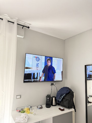 Gli asciugamani erano di pessima qualità, quasi inutili per asciugarsi. Da notare la scomodità di appoggiare gli vestiti . Anche la colazione è stata una delusione: viene offerta in un bar sotto casa (oppure in una stazione di servizio se il primo è chiuso) e comprende solo una bevanda e una brioche, spesso immangiabile. Nessuna flessibilità: se vuoi un caffè in più, lo paghi. A fronte di un prezzo tra i 145 e i 150 euro a notte, ci si aspetta sicuramente di più, almeno una colazione decente e qualche comfort in più.