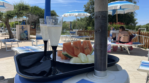 The property is located a few kilometres from the sea, it covers an extensive area and it is composed by several different building, a couple of "traditional" style, the others in the minimalist style of the reception. On the grounds of the structure there are games for children and a sitting area in the shade of the trees for spending time outdoors. From what I have seen, each accommodation also offers a private gazebo for each room. The swimming pool is large and well maintained, there are enough sunbeds both in the area adjacent to the pool and on the lawn, shaded by some large trees. The staff is professional and very friendly, offering an impeccable service. The car parks are covered by a canopy which is absolutely essential in the summer. The reception is the main building at the entrance and there you also find the honesty bar and some breakfast tables. Other tables are available outside in the shade.||I really appreciated that this hotel is dog friendly and our holiday was very pleasant. The only negative point is that I was expecting a more modern accommodation, but our room was in the "traditional" style, with the bed and lamps in wrought iron and ceiling with exposed beams in dark wood which made the room look dark and cramped. Besides, the space was not used to the fullest. For example, the accommodation is for two, maximum three people but there is a table for 4, which could be replaced by a round or smaller table, the microwave is placed on a shelf near the bed, in a tricky position and on the hung a large clock connected to an electric cable. Not only was it incongruous as a decoration, it didn't even work. The space would look lighter and bigger without the chunky table and clock. Then again, this is my personal taste and it did not detract from the very pleasant holiday, in this...