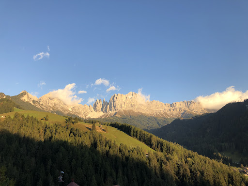 Read moreWe have just returned and found that in October the weather was great and being in the quite season between Summer and just before the Winter skiing season stared it was quite and not crowded. This is a family run Hotel, which gives it a very personal touch. It is mainly German speaking but English is spoken by the very friendly younger members of the family, Yuli (sorry if wrong spelling)one of the three brothers was very helpful on local points of interest and when choosing the wine from the extensive list of local producers. The Restaurant, Lounge and Bar was open plan, which gave it a very spacious yet still very cosy with all the exposed wood. A couple of evenings there was live local music and created a good atmosphere. We had a double room on the lower level which again was very spacious and had a large balcony with terrific views of the Dolomites and Rosengarten, which obviously gives the hotel its name. There are so many Hiking trails nearby of varying degrees of difficulty it is not necessary to have a car although we did as we arrived at Verona Airport. However the hotel will pick you up if you arrive at Bolzano Airport. There is a bus service which takes you into Bolzano about 26 Km away, this is a very nice City and definitely worth seeing is the “Otzi the Iceman” museum which is dedicated to the body of a man found in the Italian Alps in 1991and is over 5000 years old. We will go back to this Hotel next year and as a minor suggestion it would be nice to have a couple of English speaking channels on...