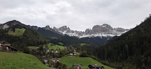 We used to visit St.Cypriano several years ago as a place to enjoy the Dolomites and there are many lovely walks in the area. We went back in 2008 and came here by mistake when the place we had booked was closed. We have no regrets. We booked in for three nights and stayed for five. We were very impressed by the family who run it and their friendly welcome. This year we went back for more.||St. Cypriano is a small Italian Tirolean village at the foot of the Niger pass a few miles east of Tiers. The village is half an hour from the Bolzano Nord exit on the Brenner Autostrada. Several mighty Dolomite Peaks range across the skyline including the fabled Rosengarten with its "glow" after sunset. ||The Hotel is away from the main road up a quiet lane with adequate private car parking. It is also at the trail head of several excellent walks into the Tschamintal valley and over the famous Barenloch and Barenfalle passes into the very heart of this mountain range. Wildlife is plentiful and the Hotel grounds bustles with birds.||B&B is available but this being Italy the Half board option is a better option. Breakfast is the usual buffet table with plenty of Continental meats, Bread rolls, Jams and fresh Yoghurt. If you want boiled Eggs you cook your own in a communal boiler. ||Dinner is a fixed menu of four courses with plentiful plates of delicious food. Being Italy there is an excellent range of inexpensive wines mainly from local vinyards and being Austrian by 'birthright' good local Beers are also served. The Restaurant is light and airey and overlooks the splendid grounds. There is a small swimming Pool.||Bedrooms are accessed by lift as well as stairs. Each bedroom has a typical wooden balcony and the ones we have used looked out over the gardens to the west and caught the evening sun.||The beds are most comfortable and the rooms spacious with a couch, easy chairs and TV. The Bathroom was quite large with modern fitments. Access to the Balcony with its two plastic chairs was through a large tilt and...