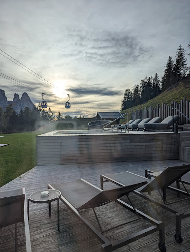 Read moreOgni Natale trascorriamo le vacanze all'Alpe di Siusi, di solito in un hotel diverso, quest'anno, abbiamo deciso di provare questo hotel che ci aveva già ospitato qualche estate fa. ||L'hotel è carino, offre servizi migliori rispetto ad un 3 stelle classico, ad esempio la spa, seppur piccola, ha tutti confort necessari. L'idromassaggio esterno è molto bello e ha una vista impagabile, peccato per la temperatura dell'acqua troppo bassa.||||Per chi scia, gli impianti sono abbastanza accessibili ma non comodissimi, il prezzo comunque è basso e giustifica la poca praticità.||||L'accesso alla cena è dalle 18.30 alle 19, un orario non molto tipico per noi italiani, anche perchè un'ora dopo la cena è finita e non ci sono particolari diversivi per il dopo cena, se non sfondarsi di drink nel piccolo bar dell'hotel. Alle 18.30 normalmente il ristorante è pieno e andando alle 19 spesso il buffet è scarno e i piatti extra rispetto alle insalate finiscono e non vengono rimpiazzati. La carta dei vini è buona, anche se i prezzi applicati risultano piuttosto elevati. Pagare 4,90 € per una bottiglia di acqua gassata, ad esempio, sembra decisamente eccessivo. Il servizio, inoltre, è fin troppo orientato al consumo: il personale di sala riempie bicchieri con una solerzia che talvolta risulta invadente. È piacevole essere serviti, ma ciascuno ha i suoi tempi e modi per apprezzare un buon vino.||||Le camere, invece, sono spartane e un po’ datate. Nonostante avessimo prenotato una junior suite con due letti separati, al nostro arrivo la stanza non era pronta: il secondo ospite ha dovuto dormire su un divano letto, decisamente non all’altezza delle aspettative.||||Un capitolo a parte merita il trattamento riservato agli animali. L’hotel accetta i cani con un supplemento di 27 € al giorno. Chi viaggia con un cane di piccola taglia, come nel nostro caso, si aspetta non solo un’accoglienza calorosa, ma anche una certa tolleranza, considerando il costo non indifferente. Purtroppo, non è stato così: quando il nostro cane si è sentito male e ha sporcato, la proprietaria è entrata in camera in modo brusco, rimproverandoci con un secco “mai più”. È stata un’esperienza spiacevole e deludente. Con un costo giornaliero così alto, ci saremmo aspettati non solo una pulizia più accurata, ma anche un atteggiamento più comprensivo nei confronti degli animali e delle loro esigenze. Accettare animali implica anche accettarne le eventuali conseguenze, con...