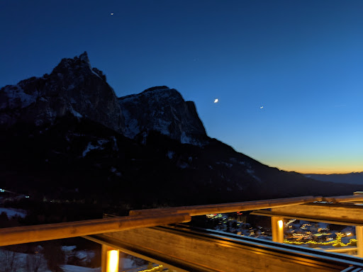 Read moreLa riconosciuta ospitalità alberghiera altoatesina, di cui non ho mancato di tessere le lodi in precedenti recensioni di hotel pari livello in cui ho soggiornato, qui sembra essersi del tutto smarrita.||Ma andiamo con ordine: la struttura, posta in zona piuttosto strategica per muoversi verso Alpe di Siusi, piuttosto che Castelrotto o Siusi, è di tipo moderno, ed è veramente bella, super panoramica, in posizione dominante, con 2 belle piscine (una di acqua calda collegata con la zona relax) e ampio solarium diffuso e panoramico. C’è una bella hall terrazzata con camino, un buon bar, ampie sale ristorante, seppur un po' anonime, e un grande terrazzo panoramico dove poter star fuori a sorseggiare un drink o cenare su richiesta. E’ però bene dire che da qui necessita muoversi perlopiù in auto, in quanto non è agevole camminare a piedi fuori dall’albergo. C’è anche una zona relax con saune ecc..ma non interessandomi la cosa in estate, non la ho frequentata e la lascio ai giudizi altrui. L’angolo con servizio tisane è piuttosto basico rispetto ad altre strutture provate. Voto struttura e location: 9 decimi.||Le camere, belle e sul moderno, sono quasi tutte panoramiche e luminose con confortevoli e ampi terrazzini esterni, specie quello in cui soggiornavo io della “Panorama superior”, allestiti con lettini prendisole (seppur al posto dei pittoreschi ma pesanti ceppi sarebbe più usufruibile un più semplice tavolino ); manca il rifornimento nel frigobar (il bigliettino lasciato per rifornirsi, all’uopo, al bar dell’hotel, non significa nulla poiché la sua funzione è proprio quella di poter attingere una bevanda qualora se ne sentisse la necessità anche di notte) e mancavano le ciabatte (che potevano essere prese su richiesta; ma perche non farle trovare in camera come ogni albergo di pari categoria?). La pulizia delle camere è solerte e convincente. Voto camere: 9 decimi||Anch’io come la maggior parte degli ospiti ho preferito la formula pensione ¾ come si usa spesso in Sudtirolo. La proposta dalla cucina è discutibile, in quanto su 5 portate non sempre è possibile avere una opzione e su 2 opzioni non sempre c’è la scelta vegetariana (non lo dico per me ma in un hotel 4 **S ciò non è appropriato). Certo: a parte c’è un ricco buffet con verdure varie e altra pietanze forse per dar modo di dare alternative, ma ripeto: l’alternativa dovrebbe essere già presente in carta per non discriminare i clienti. Sia la cucina che quanto si trova a buffet è di stampo nazionale e non molto territoriale. I piatti sono a volte ben eseguiti, a volte no, ma la media diciamo che possa dirsi più che discreta. Il servizio in sala da parte di personale giovane (a volte anche troppo giovane!) non è molto organizzato ed a volte un po' spaesato e poco puntuale: sembra manchi una valida regia di sala. Voto ristorante: 7 decimi.||La colazione è ricca, c’è un po' tutto ciò che la categoria pretende, ma il compitino finisce qui. Non ci sono prodotti che valorizzano il territorio (a parte lo spek), che sarebbero graditi, e i formaggi e salumi sono piuttosto basici per la categoria. Assolutamente inappropriato per la categoria, che i caffè debbano essere presi alle macchinette self service, o che non sia possibile avere una spremuta. Se si vuole un caffè fatto appositamente, si deve pagare a parte (sic!!). Colazione voto: 7 decimi||Sulla merendina servita dalle 13 alle 17, stendiamo un velo. Questo è un metodo che da quelle parti usano per non buttare prodotti della colazione, ma ciò che si trova è veramente risicato, con dolci anche del giorno prima, un po' di frutta e nulla di salato (salumi e formaggi totalmente mancanti), se non a volte un solo piatto di qualcosa raffazzonato insieme…Naturalmente qualsiasi bevanda, perfino acqua minerale, a pagamento dal bar. Merendina voto: 5 decimi||Ma veniamo alla nota che più stona: il servizio del personale (specie in reception e al bar) è abulico, freddo, spesso poco professionale (se poi si è di lingua italiana sembra pure che vi sia da parte di alcuni dello staff, perfino antipatia); all’accoglienza di check in, siamo stati sommariamente accompagnati in stanza e liquidati in fretta, quando sarebbe stato doveroso accompagnarci in un rapido giro dell’hotel nelle parti comuni quantomeno. Empatia pari a zero. Poca attenzione al fatto che in ogni reparto dell’hotel le cose funzionassero bene, nessun controllo (ci siamo perfino dovuti sorbire ogni pomeriggio gli schiamazzi – vietati espressamente dall’albergo - di bambini e ragazzini tedeschi in piscina riscaldata senza che nessuno dicesse nulla). Raramente in hotel pari livello mi sono sentito così poco accolto. Voto staff e professionalità: 4 decimi||Un hotel può essere bello finche si vuole, ma la sincera ospitalità è una voce che non deve mai mancare per decidere di ritornarci. Il giudizio finale è una media di tutto tenendo conto sempre di quello che si deve pretendere da una...