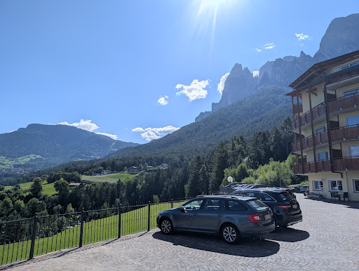 Read morePositiv:|• Die Lage ist toll! |• Der Service im Speisesaal ist hervorragend, klappt alles wie am Schnürchen, die Service-Chefin Veronica hat hier alles fest im Griff. Toll!|• Das Essen ist hervorragend, alles frisch und liebevoll zubereitet, viel Abwechslung und sehr fein. Tolles Frühstücks- und Salat Buffett! |• An der Theke ist Andrey unersetzlich, immer freundlich, gut gelaunt, schnell und aufmerksam. |• Die Masseurinnen im Wellnessbereich sind freundlich, pünktlich und geben einfach ihr Bestes! |• Die Zimmer sind groß und die Betten sind sehr gut! |• Parkplätze gibt es genügend|• Hunde dürfen mit und werden auch freundlich behandelt, ist allerdings teuer und dafür gibt in den Zimmern nichts für die Hunde, wie z.B. Napf oder ähnliches. ||Negativ: |• Wichtigster Punkt: der Wellnessbereich öffnet erst um 16.00 Uhr, wer hier einen Wellness-Urlaub machen möchte, ist also schlecht dran… |• Es gibt nirgendwo Handtücher! Auf dem Zimmer hat man pro Person ein großes und ein kleines Handtuch und eines für die Hände. Das war`s!!! Nichts für Sauna oder Schwimmbad. Am ersten Tag dachte ich: Alles klar, dann sind die Handtücher im Sauna-Bereich, nicht ungewöhnlich. Kein einziges Handtuch! Auf Nachfrage musste man hochlaufen zur Rezeption und sich dort eines erbitten. Zimmerservice: zigmal Bescheid gesagt, keine Handtücher. Im Gegenteil – unsere benutzten wurden wieder an den Haken aufgehängt, statt ausgetauscht! Im Endeffekt sind wir täglich (!) mit der Bitte um Handtücher an der Rezeption erschienen – immer wieder wurde versprochen, man kümmert sich… nichts. Erst als ich den GF sprechen wollte (11. Tag von 14 Tagen) hatte ich an Tag 12 insgesamt 8 Handtücher auf dem Zimmer. Schade, wenn man 2 Tage später abreist.|• Wellnessbereich „…bekannteste Wellness Oase des Schlerngebietes“ – Oh weia! Die finnische Sauna ist in einem unappetitlichem Zustand, man sieht die Rücken- und Kopfabdrücke der Benutzer deutlich an der Wand und auf den Sitzen – ist ja auch kein Wunder, die Leute haben ja keine Handtücher! In der Folge sitzen sehr viele ohne Handtuch oder in Badekleidung direkt auf dem Holz. Die Bio-Sauna war meistens nicht in Betrieb – ärgerlich. Blieb nur noch das Dampfbad, leider ohne ätherische Zusätze. |• Kosmetische Anwendungen wie Gesichtsbehandlungen werden von Masseurinnen durchgeführt, das ist problematisch, wenn man sensible Haut hat und eine dementsprechende Beratung benötigt. Ich habe daher meine Buchung storniert. |• Der Außenpool ist klein und wenn dann noch Kinder mit großen Einhorn-Luftmatratzen im Pool sind, ist schwimmen nicht mehr möglich. Im Innenpool gibt es keine Dusche!!! Die Leute kommen von oben oder draußen und gehen verschwitzt direkt in den Pool und in den Whirlpool. Uff…! Der Whirlpool hat einen Zusatz, der sehr stark riecht und schäumt, das ist sehr unangenehm! |• Der Service in den Zimmern ist eine reine Katastrophe – die Männer verstehen kein Wort Italienisch, Deutsch, Englisch… Die Kolonne macht in den Zimmern ein reines Tohuwabohu, wenn man wiederkommt, stehen die Schuhe am anderen Ende des Zimmers oder auf dem Sofa, der Badmülleimer im Waschbecken, der Zimmermülleimer stand einmal auf meinen Laptop (!), die Bad-Utensilien muss man täglich neu einräumen und sortieren. Nervig… Mein Bademantel wurde entfernt, ohne meine persönlichen Gegenstände aus den Taschen zu nehmen, unwiederbringlich verloren… |• Einen Kosmetikspiegel gibt es nicht. |• Der Fitnessraum ist in einem Kellerraum ohne Fenster und Lüftung, es gibt nur 5 Geräte und wenn man dort trainiert, muss man recht schnell wieder aufhören, da einem schlecht wird. |• Im gesamten Hotel gibt es keine Klimaanlage. Das ist im Speisesaal ein Problem, auch dort wird einem schnell flau – vor allem, wenn ein Menü sich über 3 Stunden zieht. |• Es gibt einen Billardtisch – aber wenn man spielen will, kostet die Stunde 8,- €|• Draußen gibt es nicht genügend Tische für alle Gäste, bei schönem Wetter müssen also viele drinsitzen. Und die, die draußen sitzen, sehen nix, da man genau vor die Terrassenmöbel Parkplätze angelegt hat, man schaut also auf Autos… |• Das W-LAN schwach bis gar nicht verfügbar, habe die gesamten 14 Tage meinen eigenen Hotspot benutzen müssen. ||Generell würde ich viele der genannten Punkte gar nicht aufführen, wenn es ein „normales“ Hotel wäre. Ich bin beruflich ständig in Hotels und habe daher gute Vergleichsmöglichkeiten. |Aber dieses Hotel ist sehr (!) teuer, hat 4 Sterne und dann möchte man für sein Geld auch eine entsprechende Leistung haben, erst recht, wenn es der Jahresurlaub ist. Dies ist hier absolut nicht gegeben, es wird an Kleinigkeiten und Selbstverständlichkeiten gespart, das ist ärmlich und nicht zu...