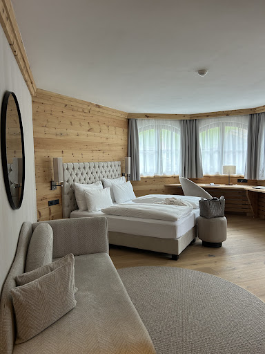 Savoy Hotel was an experience! More expensive than other close hotels, it was well worth the cost. Highlights of the hotel: the food is absolutely fantastic, the service impeccable and rooms beyond comfortable. After traveling to five different destinations in Italy, having breakfast and dinner provided for us, downstairs, to start and end our day, was such a relaxing treat. Each meal was at one table in the dining room saved for our family, also with the same server every meal. Serge, our server, so attentive and accommodating, seemed to take pride in his job— and epitomizes the professionalism and courtesy of the hotel staff. Breakfast offers a range of fruits, juices, grains, breads, cheese, pastries— with eggs, pancakes, any coffees made to order. Dinner is not just a meal— this is a culinary experiences with fresh ingredients, a range of dishes, with attention to flavor and creativity. 5 courses, self serve salads and anti-pastas followed by three ordered courses, then originally created dessert offered with a range of self serve del opus options. While we so appreciate that the Italians enjoy much longer meals than most Americans, with hours of socializing before any food arrives, we appreciated the attention to service and option to start with our own fresh salads, having come off the mountain each day ready for nourishment. This chef is as good as any New York chef we’ve experienced, and far more pleasant, speaking to guests after dinner ends. |We are not wine drinkers so can’t speak to that aspect but it appeared the hotel owner educated and served guests the wine that suited them. The hotel itself— we stayed with our family of five: two adults and three older teenagers. We stayed in a family room. We all loved this accommodation— very specious, so clean and comfortable with direct view of Dolomites. Our housekeeper was also a highlight— so cheerful, friendly, accommodating, and unlike the states where housekeeping is often still “not provided because of Covid,” this hotel is full service. We enjoyed the fitness facility, pool, and close proximity to shops and restaurants in town. The management— while others have said not effusive with warmth— we felt could not have been more accommodating. These people are not just running a hotel but take pride in every aspect of the experience. Attention to detail and to guest satisfaction is the focus at this superb hotel. Selva di Val Gardenia is a place not to be missed. While we did not see or hear many Americans at the hotel or in town, every person tried their best to help us find what we needed and make our stay what we hoped. Our hotel concierge gave us detailed directions to use our complimentary bus tickets to several unforgettable hikes, scheduled our car services back and forth to the Bolzano train station and made the trip easy. We cannot say enough about this special hotel, at the foot of the Dolomites and the quiet back corner of Selva, and we only hope we will be able to return in...