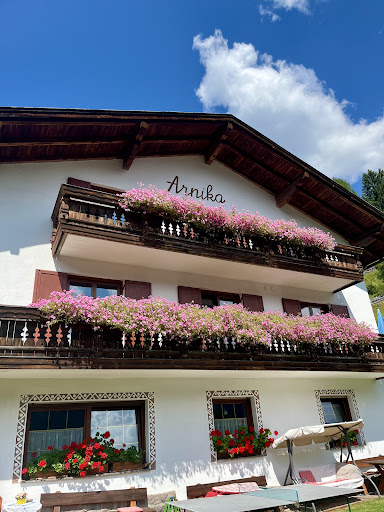 Read moreСложно писать отзыв когда воспоминания уже наполнены другими впечатлениями за то он наверняка будет беспристрастным и созревшим. И так Вилла Арника один из многих гостевых домов расположенных в этом районе не самый плохой но и не самый лучший такой крепкий середнячок, что может заставить обратить на него внимание. Сначала о достоинствах, поскольку жили мы у Айвана (именно так хозяин просит его называть) в апартаментах и одноместном номере то отмечу сразу что в квартире все довольно прилично есть почти вся бытовая техника, два сан узла в апартах на 2 спальни и как правило у хозяина есть почти всегда свободные номера если с вами приедут еще друзья. Семья отзывчивая дружелюбная, улыбчивая хозяйка дома, немного задумчивый хозяин увлекающийся резьбой по дереву, сын и дедушка которых почти невидно. Отель чистенький расположен в тихом месте с хорошим панорамным видом почти из всех номеров, номера теплые и отвечая на предыдущий отзыв сразу скажу что хозяин если вам зимой будет прохладно без лишних вопросов прибавит температуру. Есть комната для лыж и сушилка обуви в келере внизу у входа, довольно просторная комната для завтраков, и отличная полянка около дома, пожалуй все положительные моменты я перечислил.|| Теперь недостатки; Расположение - на мой взгляд по ценовому уровню отель должен располагаться ближе к подъемникам или предоставлять бесплатный трансфер хотя бы один раз в день, утром туда и обратно вечером как во многих небольших отелях в этом регионе поскольку он расположен высоко на горе, остановка SKIBUS немного в ниже а это как известно неудобно после катания. Проживание- Апартаменты в принципе удобны только маленькие санузлы (трешься попой о деверь гармошку), бытовая техника есть но нам пришлось привезти электрический чайник поскольку в Италии чай почти не пьют, мы оставили его в подарок хозяину пусть у других гостей одним вопросом будет меньше, плита на 2 конфорки с газовым баллоном внизу, (у нас дома по правилам пожарной безопасности баллон с газом должен находиться в хорошо проветриваемом помещении а не под плитой, а да плита немного бьется током от электро пьезо поджига осторожней!), холодильник маленький как в мини-баре отеля (в общем продукты вам положить будет особо некуда), есть кофеварка но для кофе американо, посудомоечная машина отсутствует Свет над плитой не горит фильтр вытяжки просится к замене диван в гостиной немного протерт, мебель остатки былой роскоши из 1990. Что касается номеров, наш друг жил в одноместном номере на 3 этаже за 40 евро в сутки с завтраком (завтрак приличный, с какао и выпечкой заботливо приготовленной хозяйкой) но был один нюанс в номере был только душ туалет находился рядом с его номером в коридоре и когда мы друга спросили а как быть если туалет будет занят, он пошутил что всегда есть душ. Поскольку у нас на этаже тоже были автономный туалет и душ в коридоре думаю еще есть номера с удобствами на этаже. Поскольку отдых наш планировался совсем не заранее а месяца за 2-3 и это был высокий сезон неделя проживания обходилась нам в 1000 евро за апарты на 4 человек это недорого но и не мечта экономного туриста, поскольку на 2000 евро что мы заплатили без учета проживания нашего друга мы например в Австрийском Ischgl жили в таких крутых апартаментах с этими не сравнить (можно прочитать мой отзыв ) поскольку 