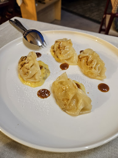 Siamo stati in due a cena al ristorante.La recensione si riferisce, per tanto, solo a questo. Il posto è bellissimo, non c'è niente da dire, in aperta campagna. Un tantino fuori mano, e ci si arriva da una strada mezza asfaltata e mezza no per alcuni km, che non è proprio il massimo. Bella la struttura e molto particolare. Palesemente una struttura per turisti, Palesemente per turisti di una certa fascia di reddito...non proprio economica, diciamo cosi; ricercati! Il personale del ristorante: la responsabile molto gentile, attenta e disponibile, l'altra ragazza al servizio piuttosto fredda e riservata, in tutto il servizio non ha detto una parola... Piatti molto buoni, menù vario tra pesce e terra interessanti. Assolutamente non economico, Adatto al contesto. Perché, allora 4 stelle e non 5? Perché i piatti, ben curati, ecc ecc, ma nell'antipasto di mare, ad es che, per carità, materie prime buone, ma con accompagnamento di salsine messe solo a decorazione del piatto, una gocciolina che non ha senso se non decorativo e alla fine non fanno parte della degustazione del piatto, tanto sono ... neanche assaggini, niente. Lo abbiamo anche detto alla cameriera, che ha detto lo avrebbe riferito in cucina. Stesso discorso per i gamberoni in tempura, qui, hanno cercato di "riparare" aggiungendo una ciotolina di maionese a parte... equivalente a una bustina x quantità, mentre la composta di visciole due cubetti da 2 cm. Peccato perché l'estetica predomina sul piatto che perde un pochino nella resa finale a equilibrio. Certe salse devono accompagnare il piatto, se no non hanno senso, non metterle è la stessa cosa. Nel complesso siamo rimasti soddisfatti, anche se in 2 abbiamo speso 60 € a testa SENZA nessun vino, non è poco Non so' se lo...