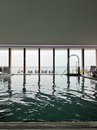 Abbastanza deludente.. Due stelle solo per la vista fronte lago. Terme molto piccole e nonostante questo la temperatura all’interno era fredda! Solo dentro la sauna si stava bene.. il problema è l’uscita dalla piscina interna a quella esterna: il divisore era SEMPRE aperto! L’aria dentro era infatti sgradevolmente fredda.. abbiamo chiesto agli addetti e hanno detto che la chiusura era fuori uso! Vergognoso.. un altro punto negativo: la cuffia che ti danno in dotazione: e’ in TESSUTO! Appena sei fuori e si bagna anche di poco si inizia a sentire subito freddo alla testa stando all’aperto! Rendendo necessario il rientro all’ambiente chiuso (che però e’ riscaldato poco…). Dovrebbero dare quella impermeabile per evitare che la gente si ammali… però evidentemente gli costa di più ;) Inoltre il pavimento degli ambienti e’ sempre molto bagnato, dovrebbero passare ad asciugarlo più spesso. Il massaggio di copia da 25’ assolutamente niente di eccezionale.. Mi spiace ma sicuramente non torneremo, le terme accoglienti e confortevoli solo altre e non c’è l’obbligo...